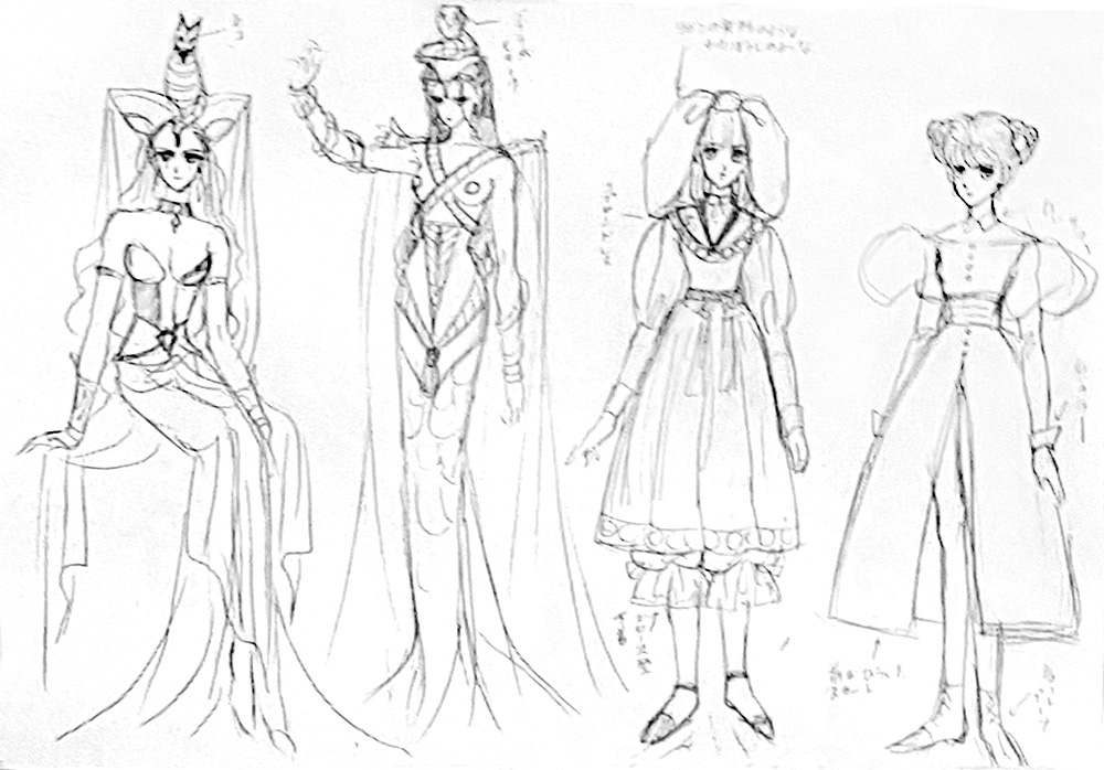 This is uh...a composite made of several photographs someone surreptitiously took at the 20th Anniversary Exhibition. These early character concepts appear in no printed materials that I know of.